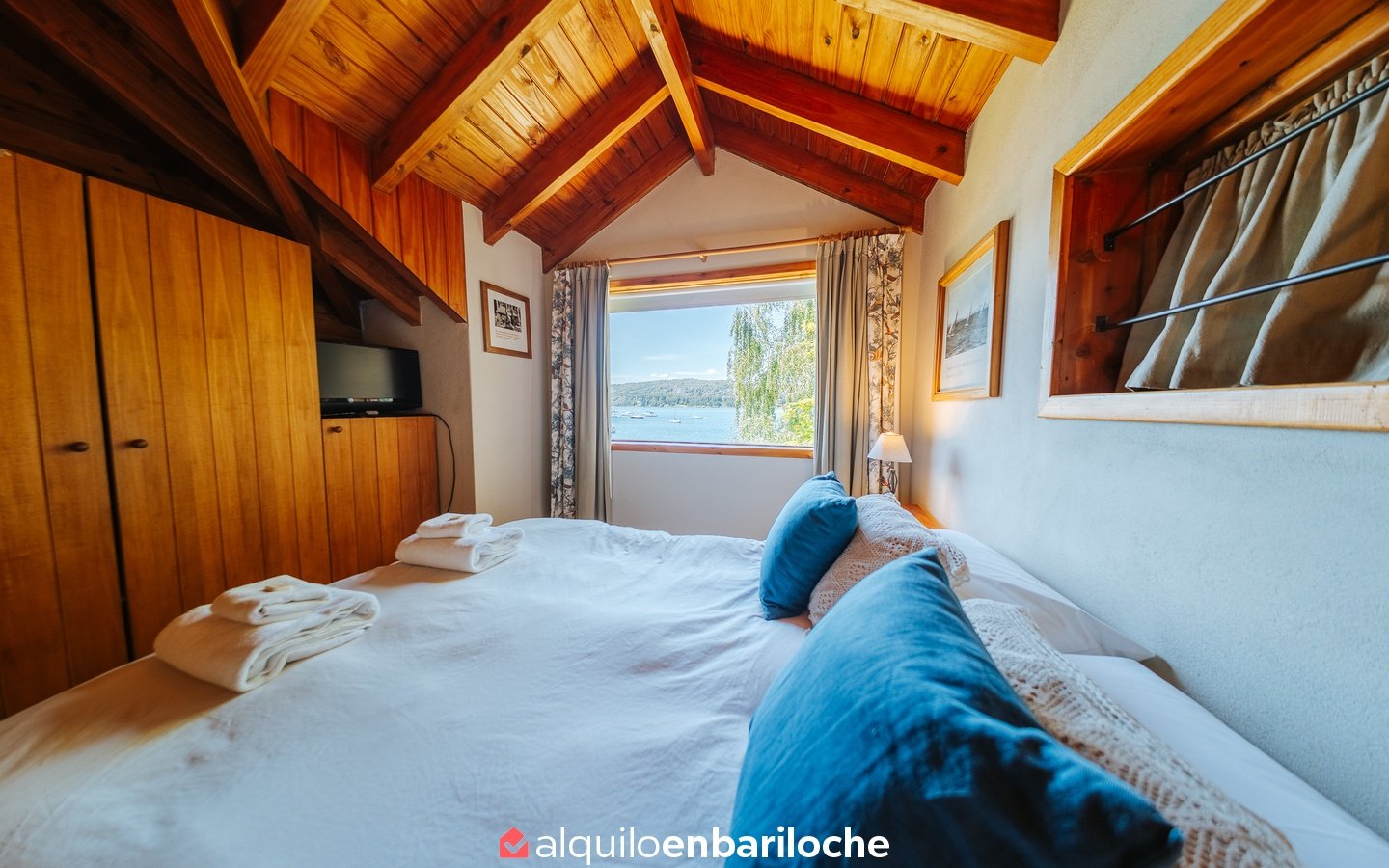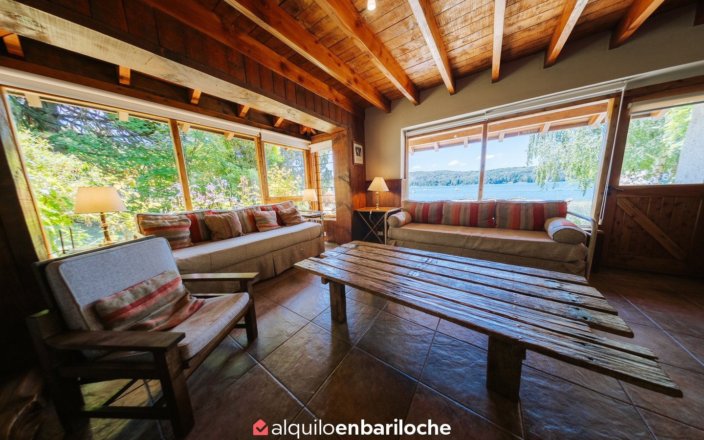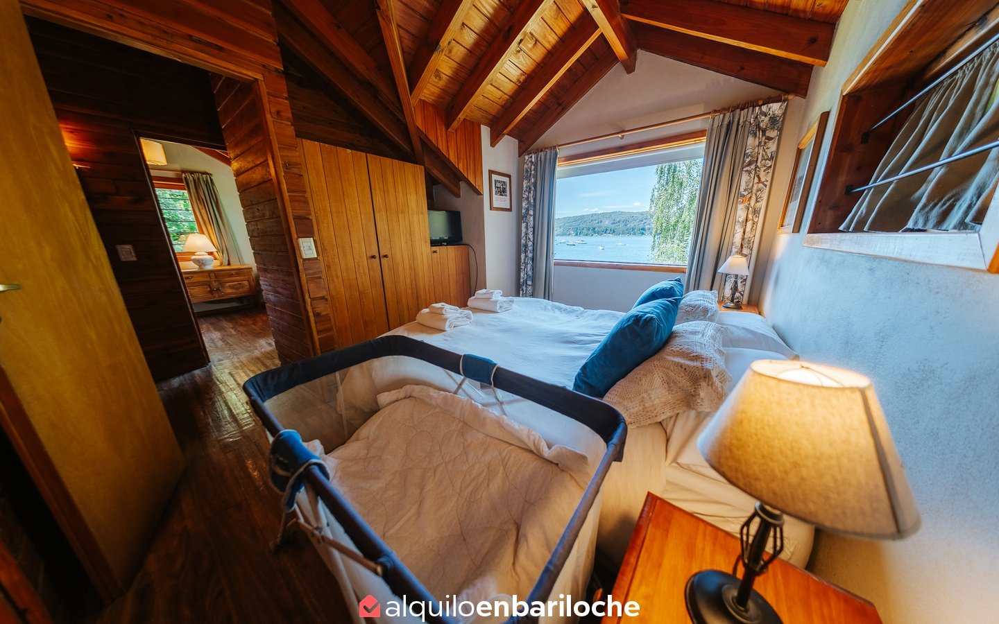 Cabaña Lago, en complejo (junto otras 3 cabañas) frente al Lago Nahuel Huapi (ésta es la más cercana al lago).