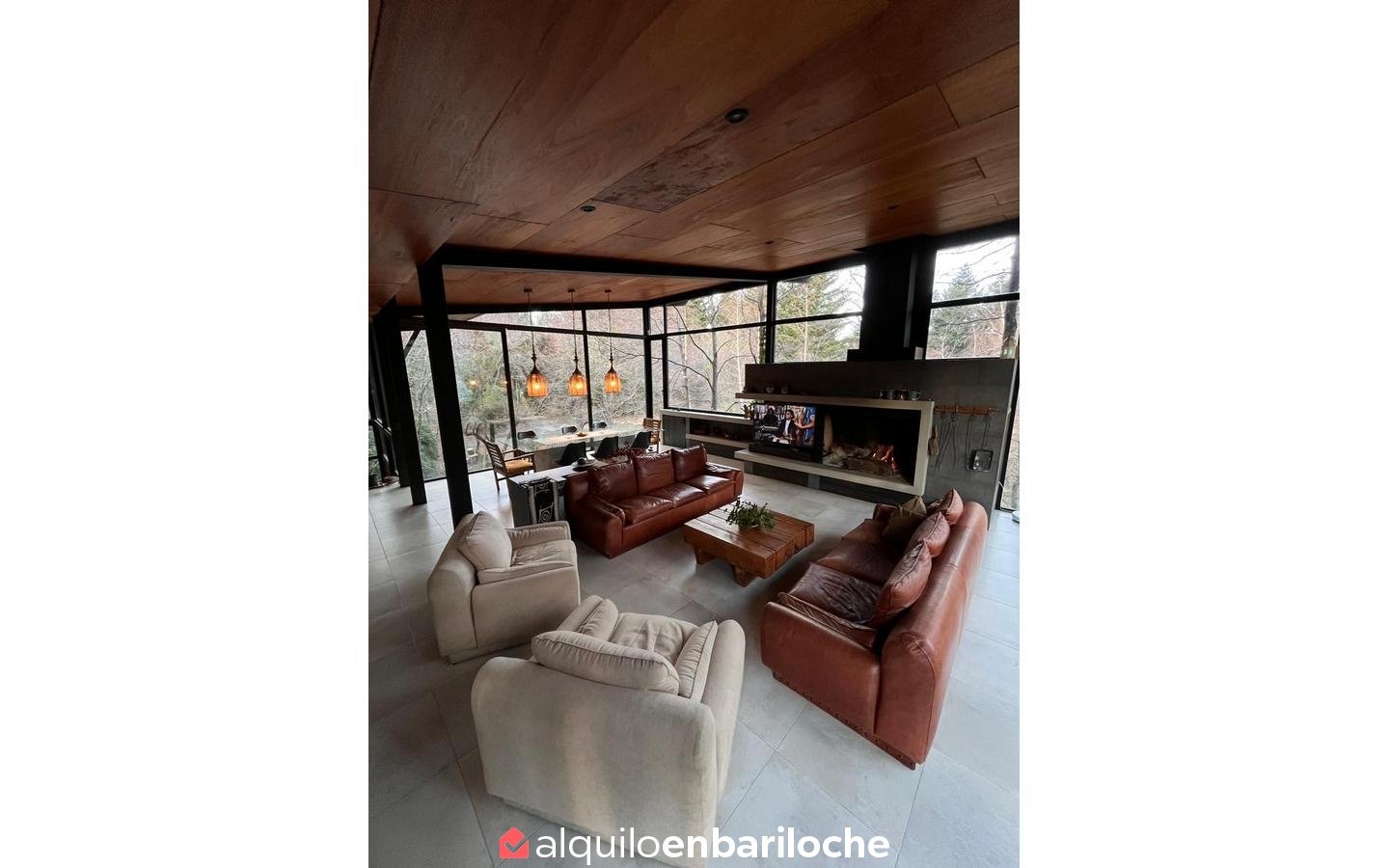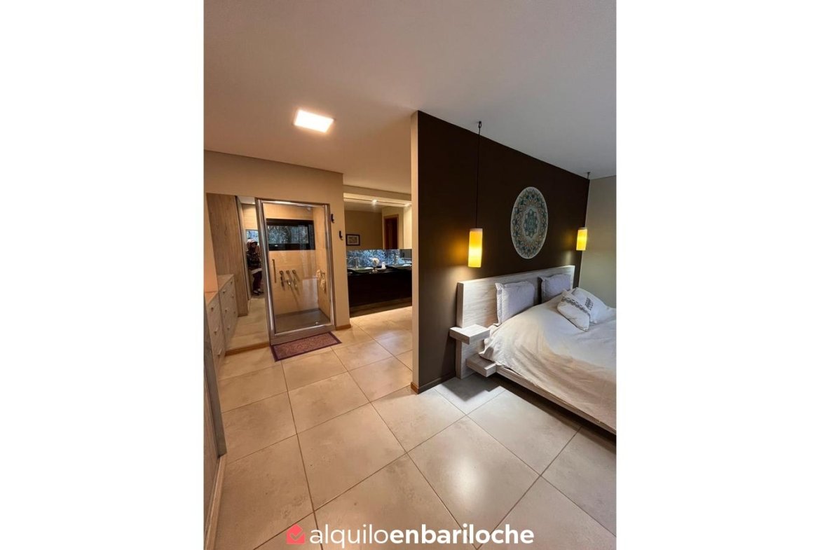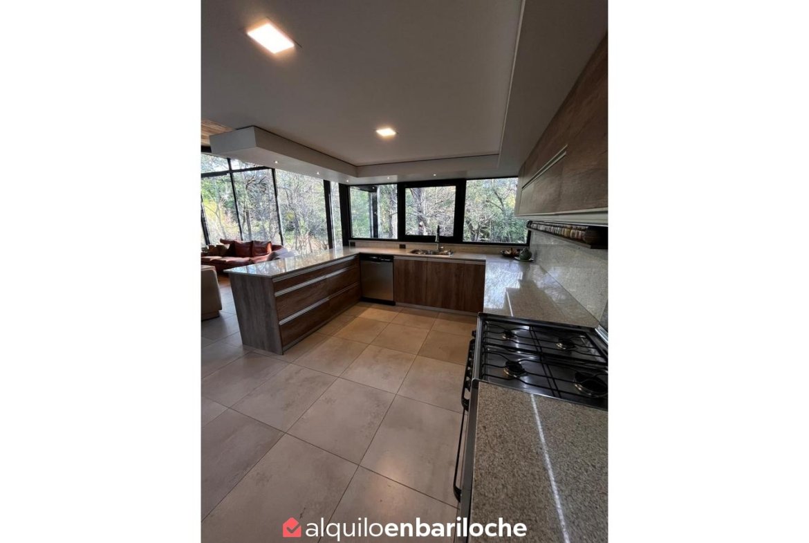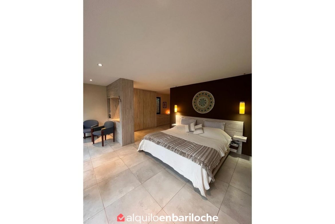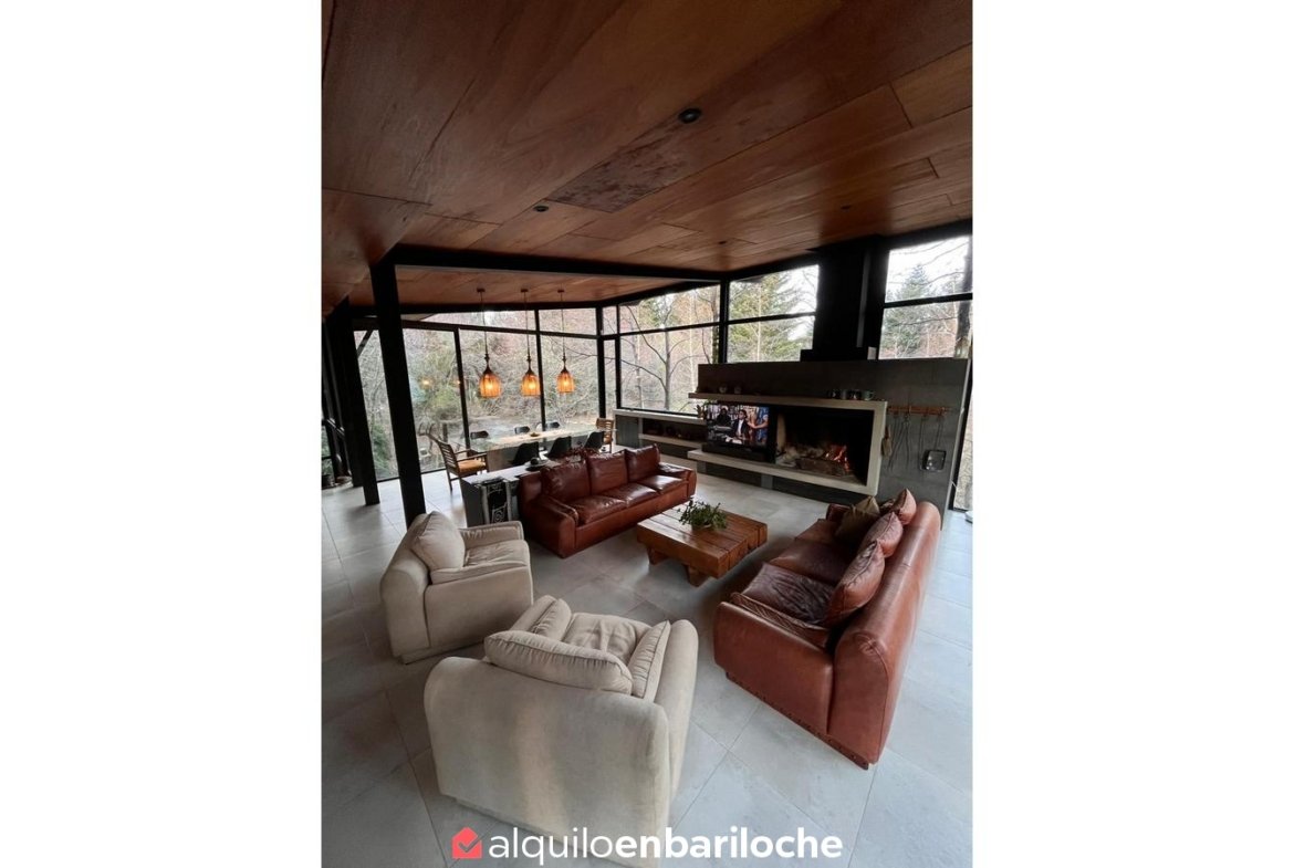 En el exterior, la casa dispone de parrilla y mobiliario para disfrutar del entorno al aire libre, junto con acceso directo a la bahía del Lago Moreno. Cuenta además con estacionamiento, parrilla, TV y conexión Wi-Fi. Incluye ropa blanca.