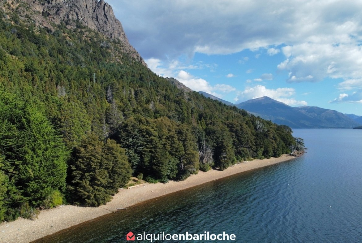 Ubicada en un predio de bosque nativo a orillas del Lago Gutiérrez, esta casa ofrece bajada directa a una playa amplia con piedras chicas, ideal para uso familiar. Todos los ambientes cuentan con grandes ventanales que brindan vistas panorámicas al lago. Ideal para familias o parejas que buscan privacidad, confort y conexión directa con la naturaleza.