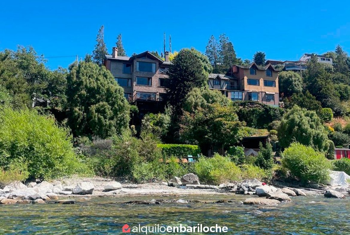 A Localização Perfeita: Praia Privada a Minutos do Centro Esta propriedade é uma joia rara em Bariloche. Localizada no Km 5 (Bairro Melipal), oferece algo difícil de encontrar: acesso direto e privativo à costa do Lago Nahuel Huapi, estando a apenas 10 minutos de carro do Centro Cívico e da Rua Mitre.