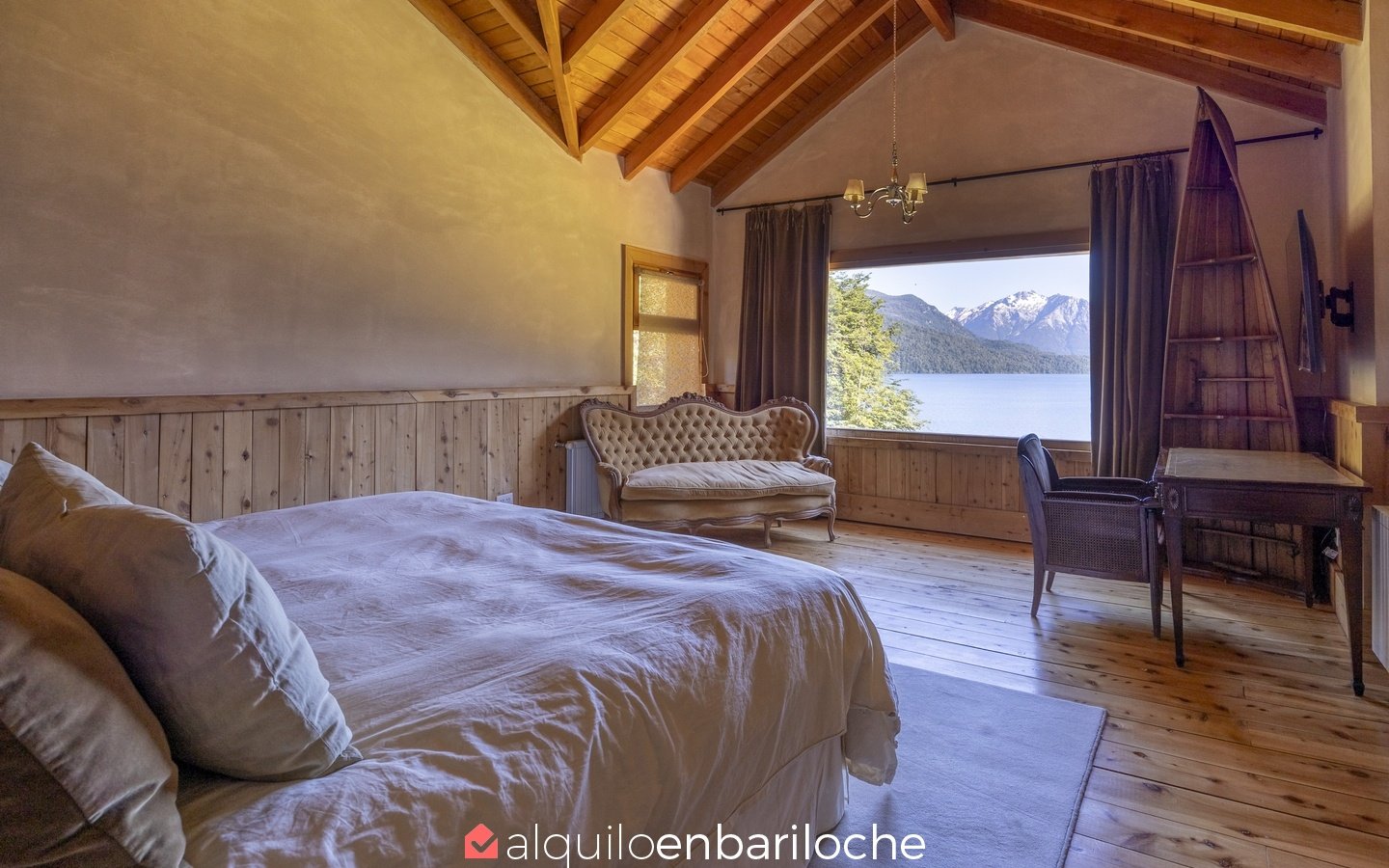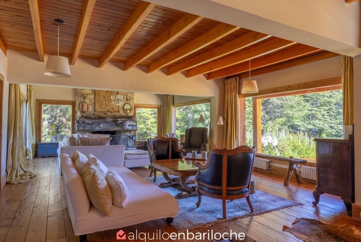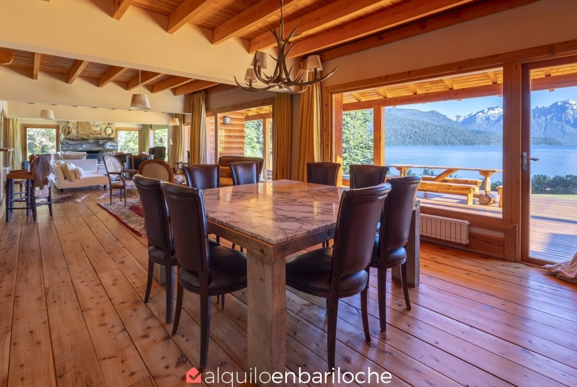Esta majestuosa residencia en Lago Mascardi, con 200 m de playa rodeada de bosques autóctonos, combina espacios amplios, quincho con parrilla y chimenea, y acceso directo desde la Ruta 40; pensada para familias de hasta 12 personas que buscan confort y privacidad a 35 km de San Carlos de Bariloche.