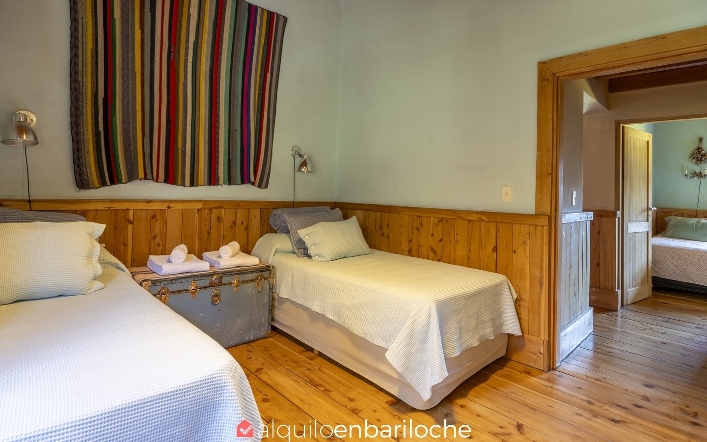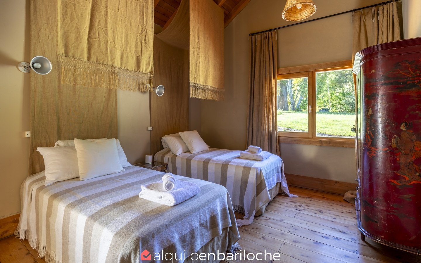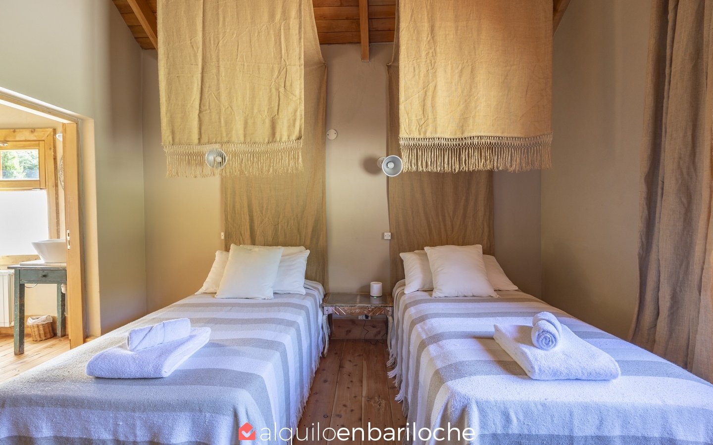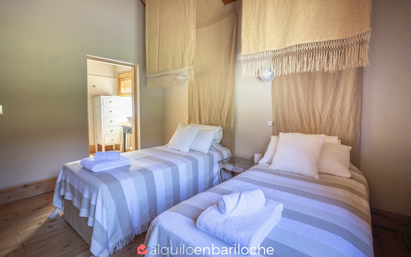 – 1 dormitorio independiente de huéspedes con 2 camas queen y baño completo