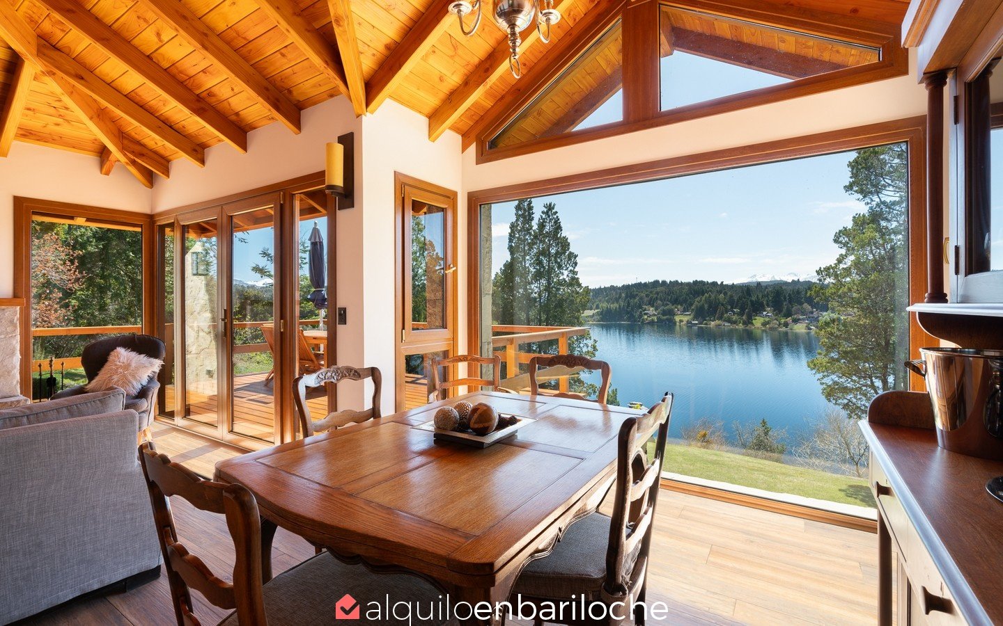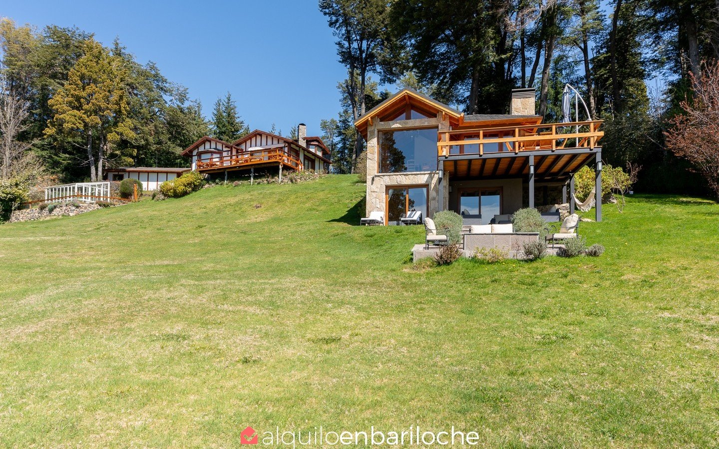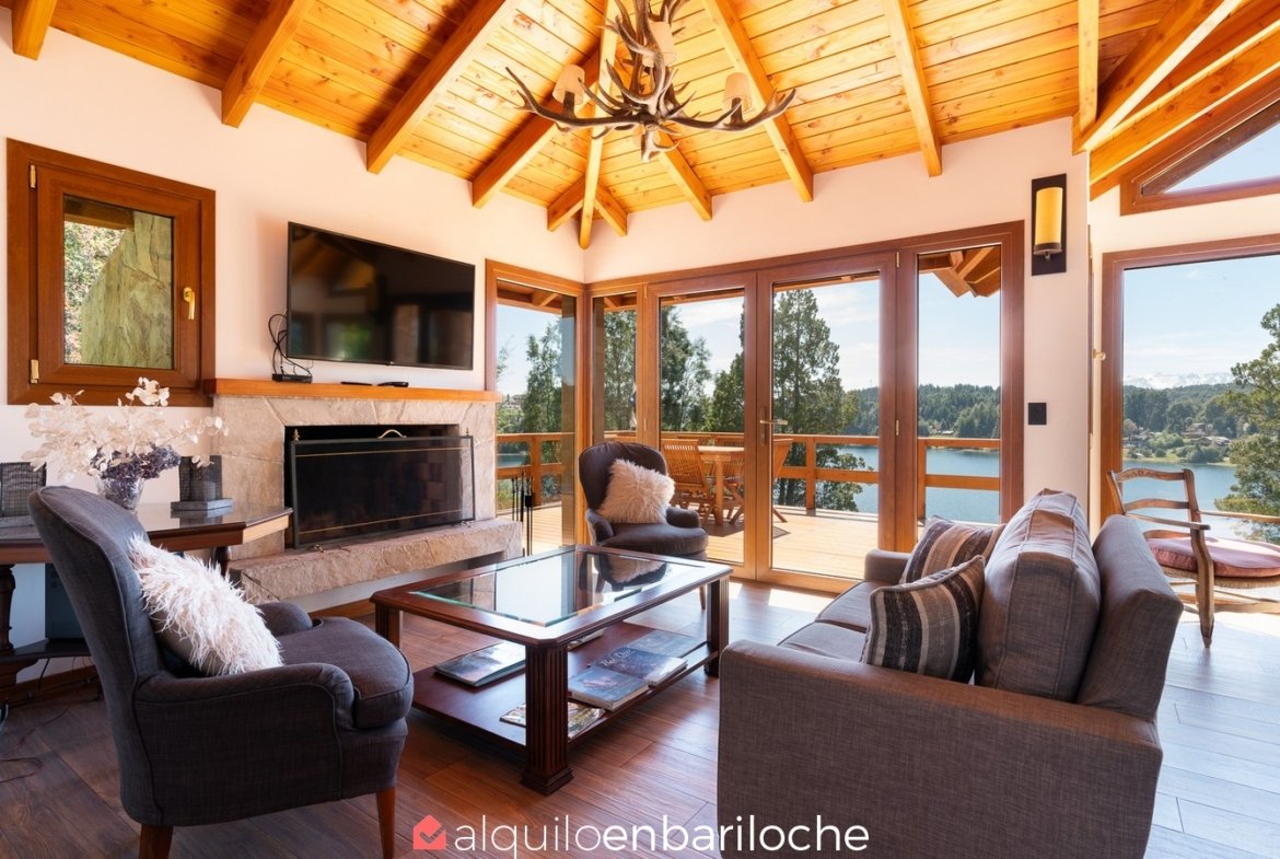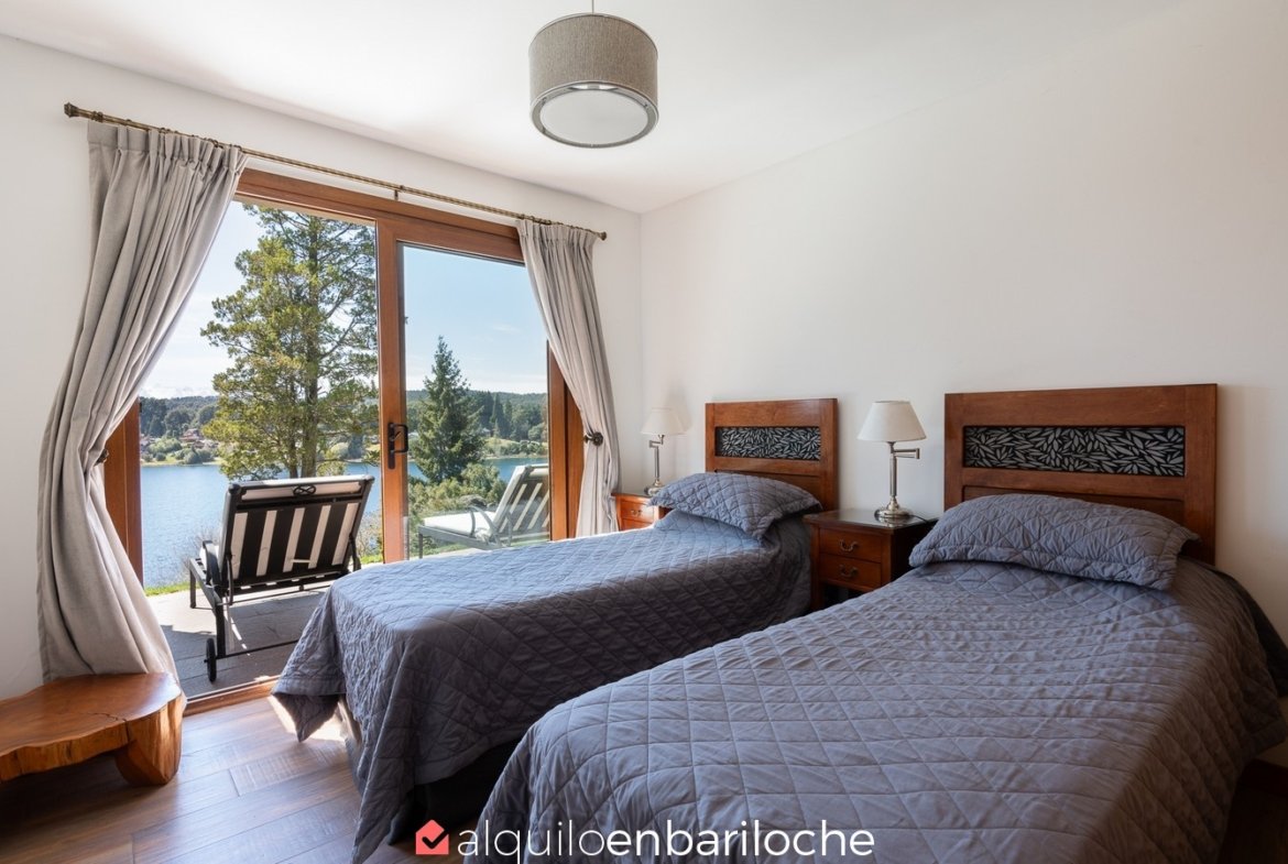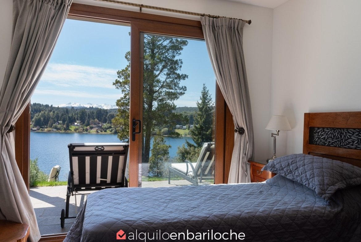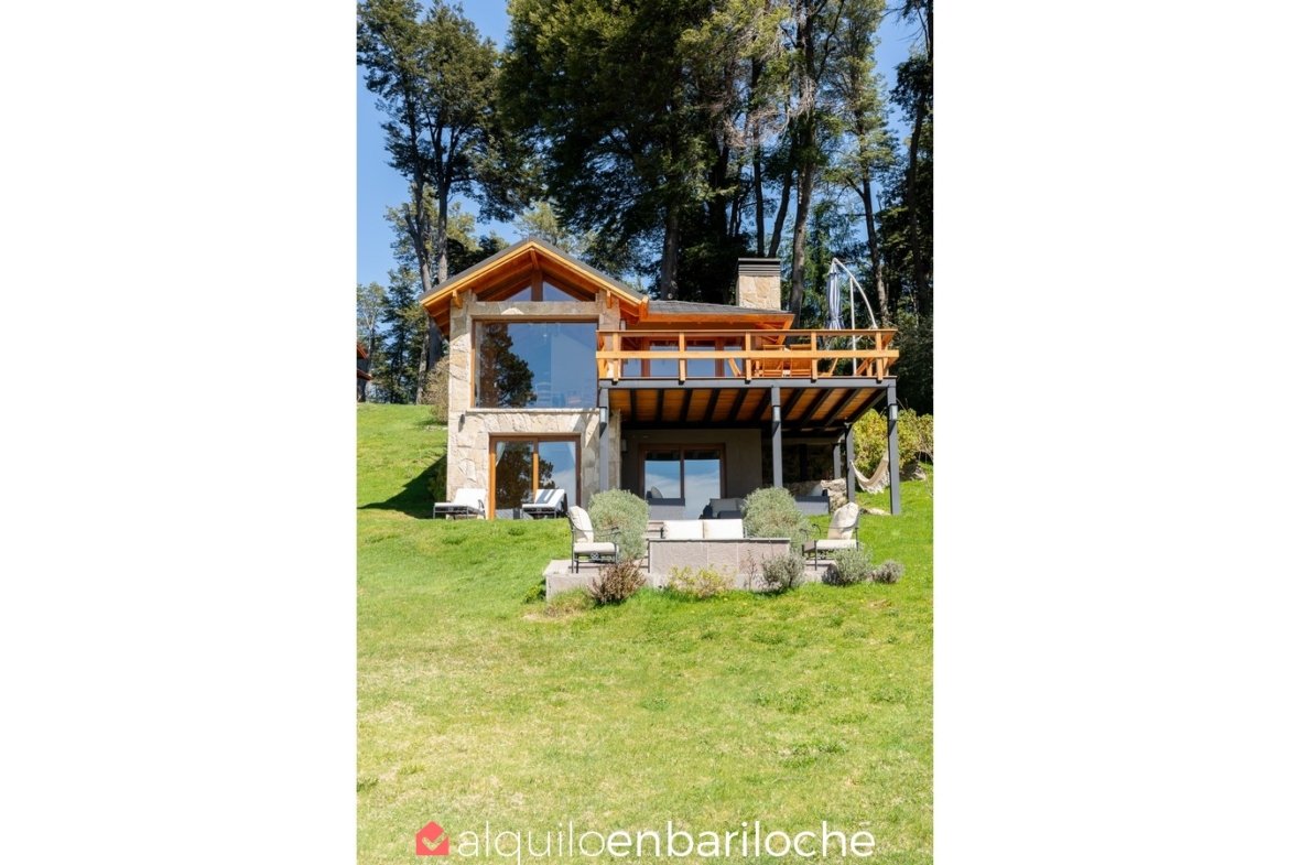 Casa en alquiler en Bariloche, sobre el lago Moreno. Esta exclusiva casa, inmersa en la naturaleza y a solo metros del Lago Moreno, ofrece una experiencia incomparable. Con capacidad para 4 personas, cuenta con dos habitaciones que gozan de vistas panorámicas.