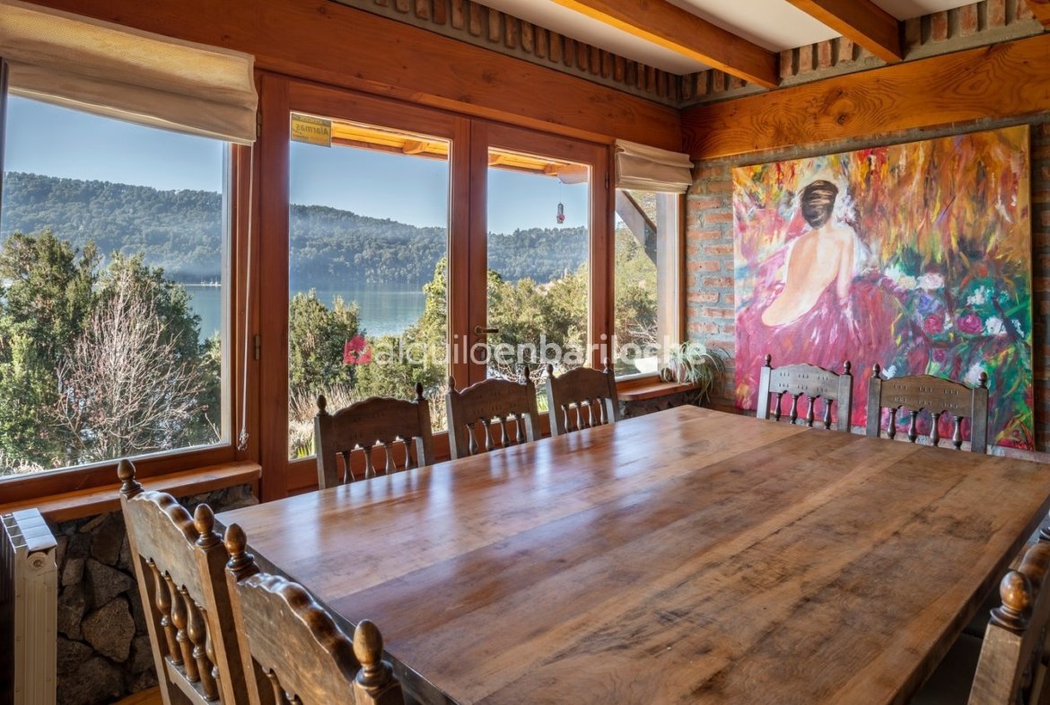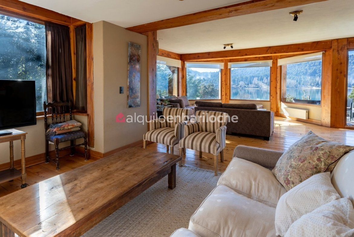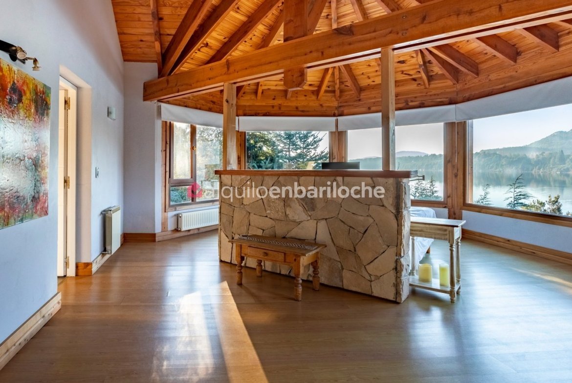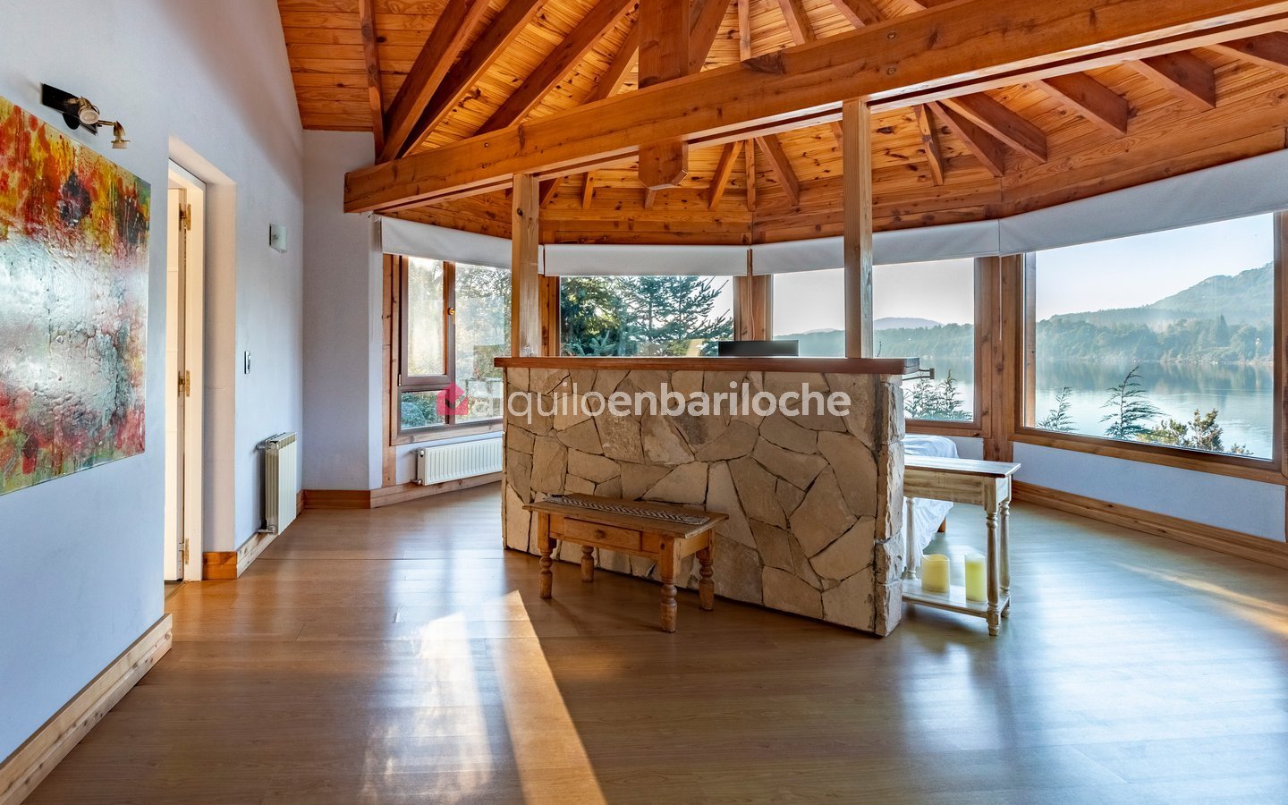 A solo 16 km del centro de Bariloche, sobre Av. Bustillo, esta casa de tres niveles con costa propia al lago Nahuel Huapi está pensada para quienes buscan un entorno privado, vistas abiertas y espacios amplios para disfrutar en familia o entre amigos.