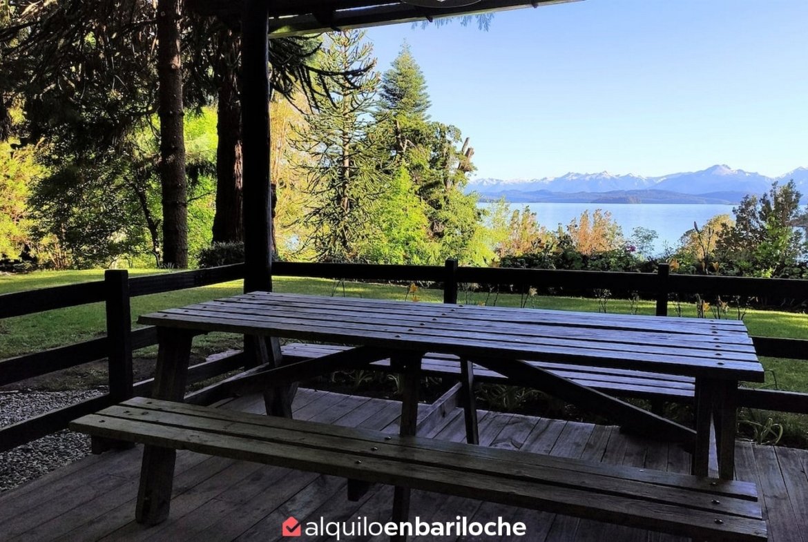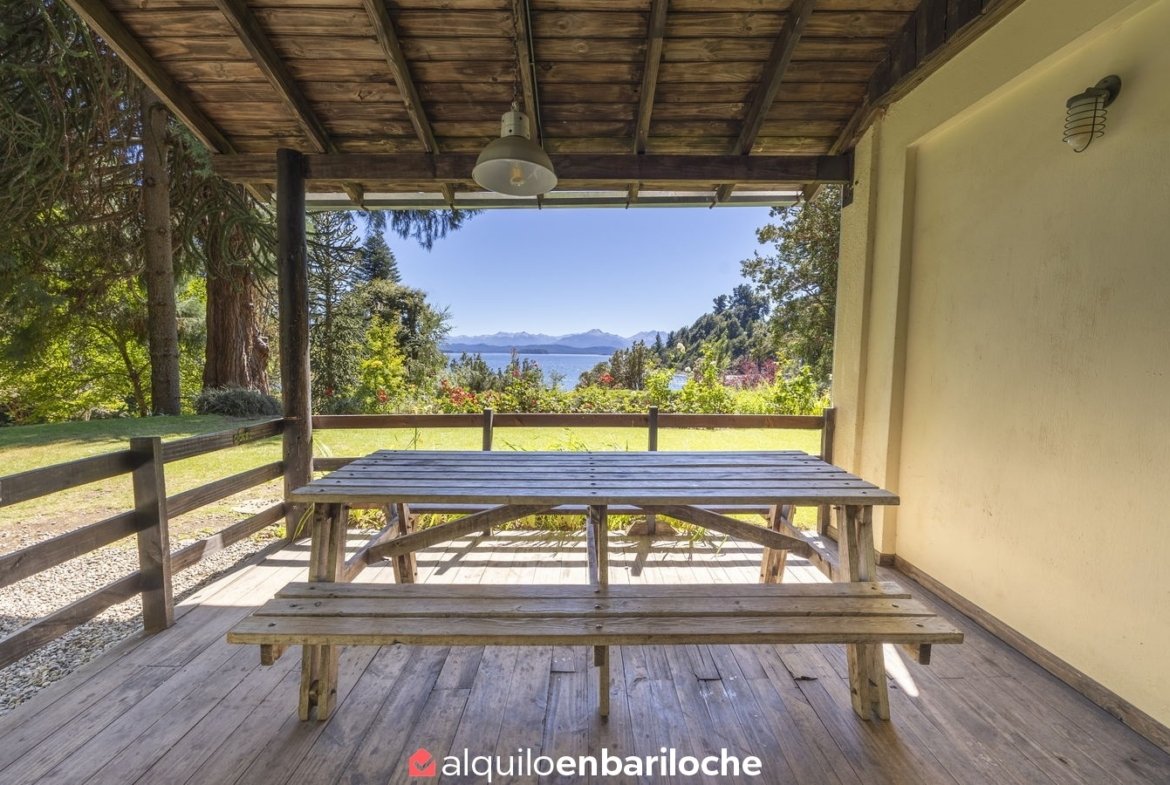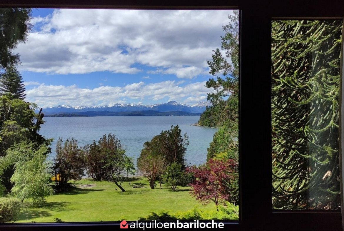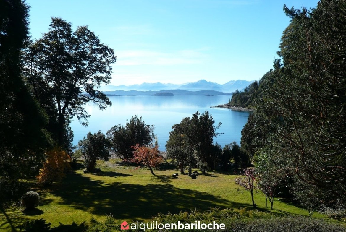 Alquiler casa en Bariloche sobre el lago Nahuel Huapi. La propiedad está ubicada en Villa Tacul, un lugar tranquilo en el parque Llao Llao, a 500 m del cerro del mismo nombre, a pocos metros de una bahía paradisíaca y a cuatro kilómetros del Hotel Llao Llao.