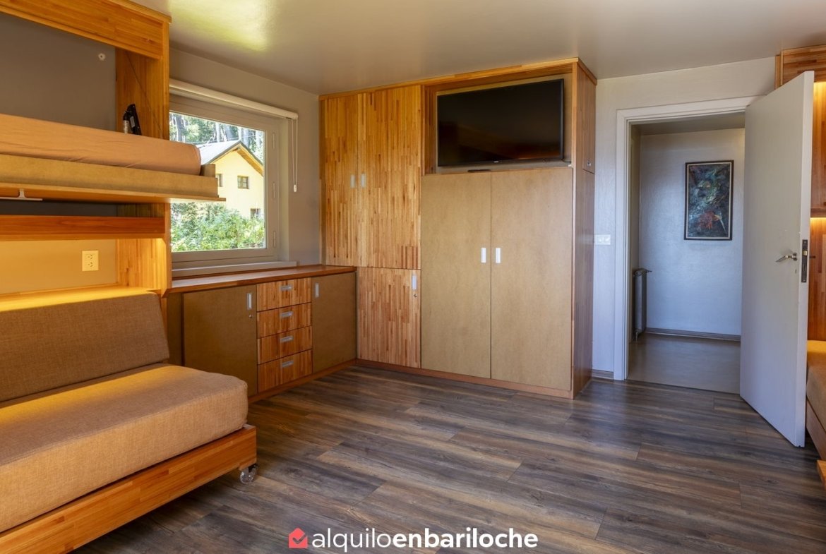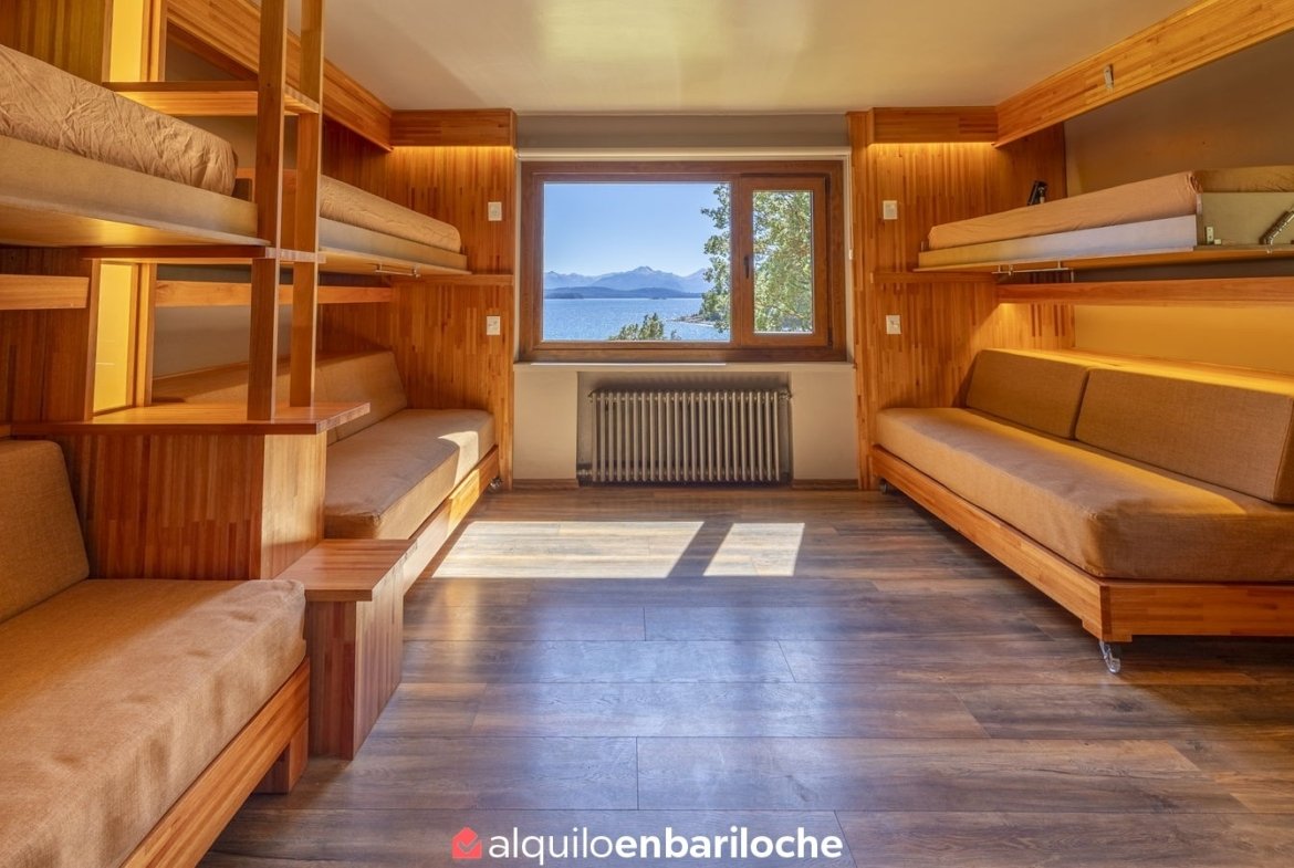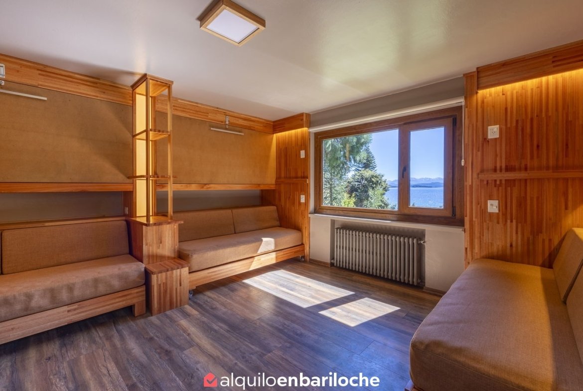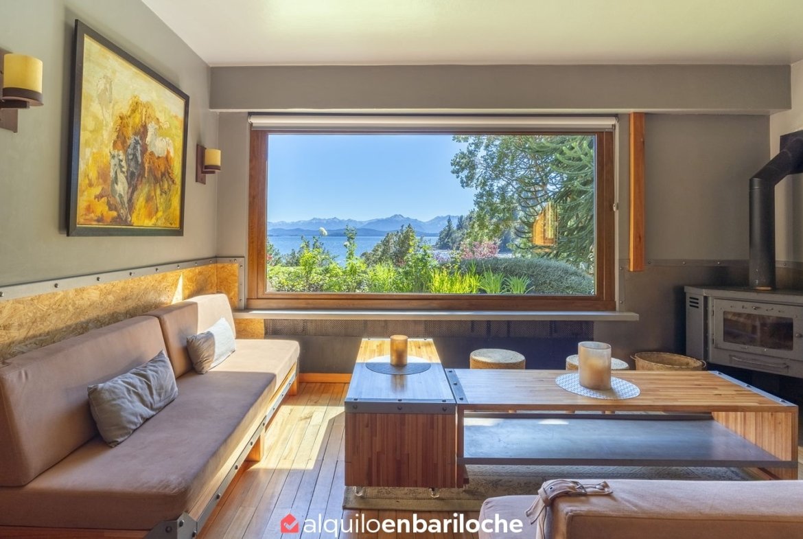 Alquiler casa en Bariloche sobre el lago Nahuel Huapi. La propiedad está ubicada en Villa Tacul, un lugar tranquilo en el parque Llao Llao, a 500 m del cerro del mismo nombre, a pocos metros de una bahía paradisíaca y a cuatro kilómetros del Hotel Llao Llao.