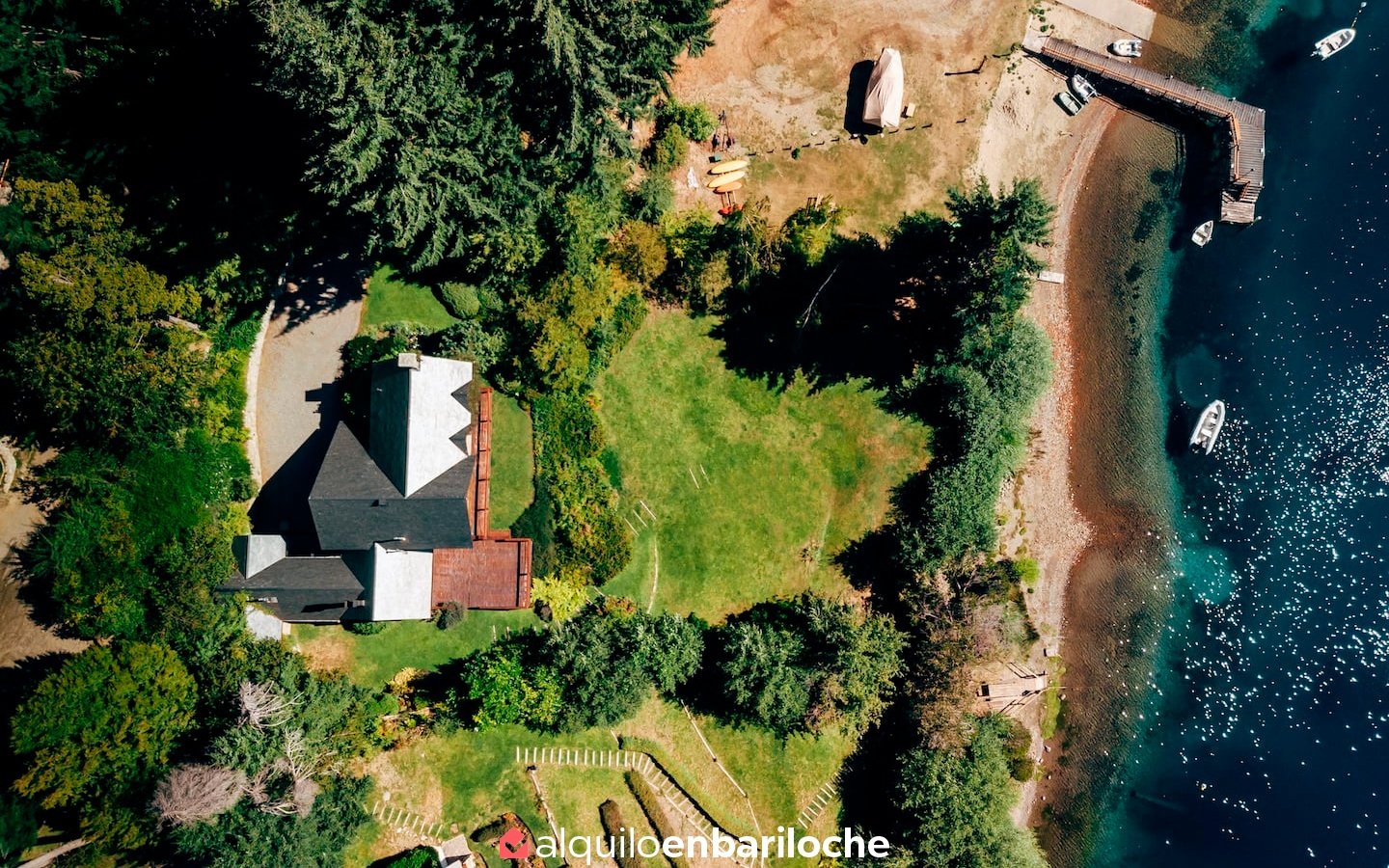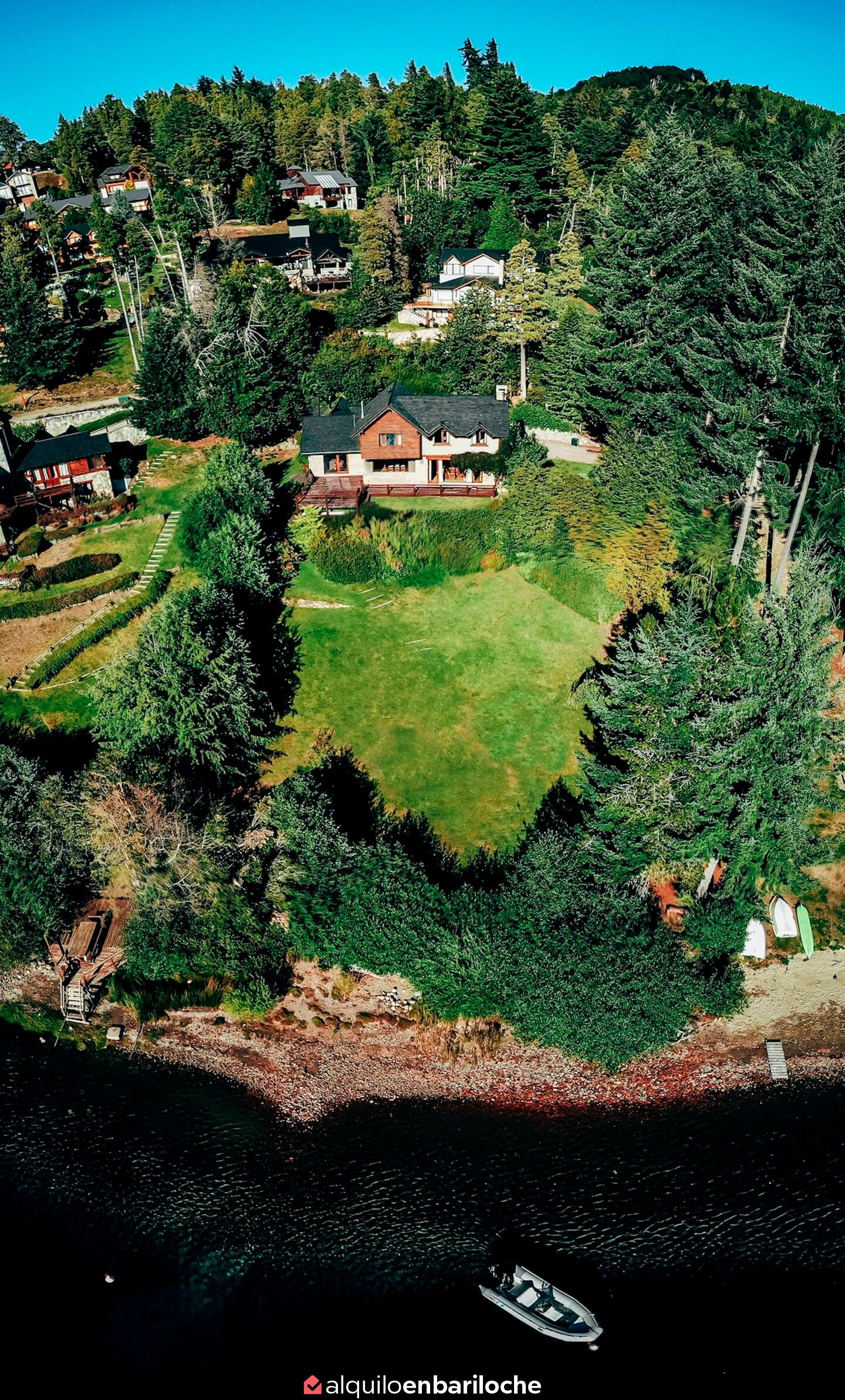 Ubicada en un exclusivo barrio cerrado sobre la ruta a Llao-Llao (Av. Bustillo), esta casa ofrece acceso directo al lago Nahuel Huapi, playa privada y seguridad 24 horas. Ideal para familias o parejas que buscan privacidad, confort y conexión directa con la naturaleza, a solo 20 minutos del centro de Bariloche.