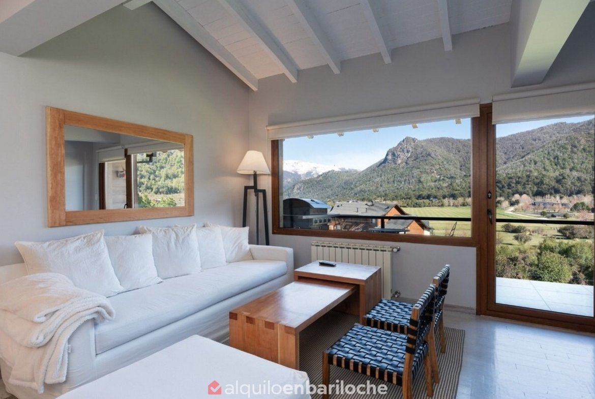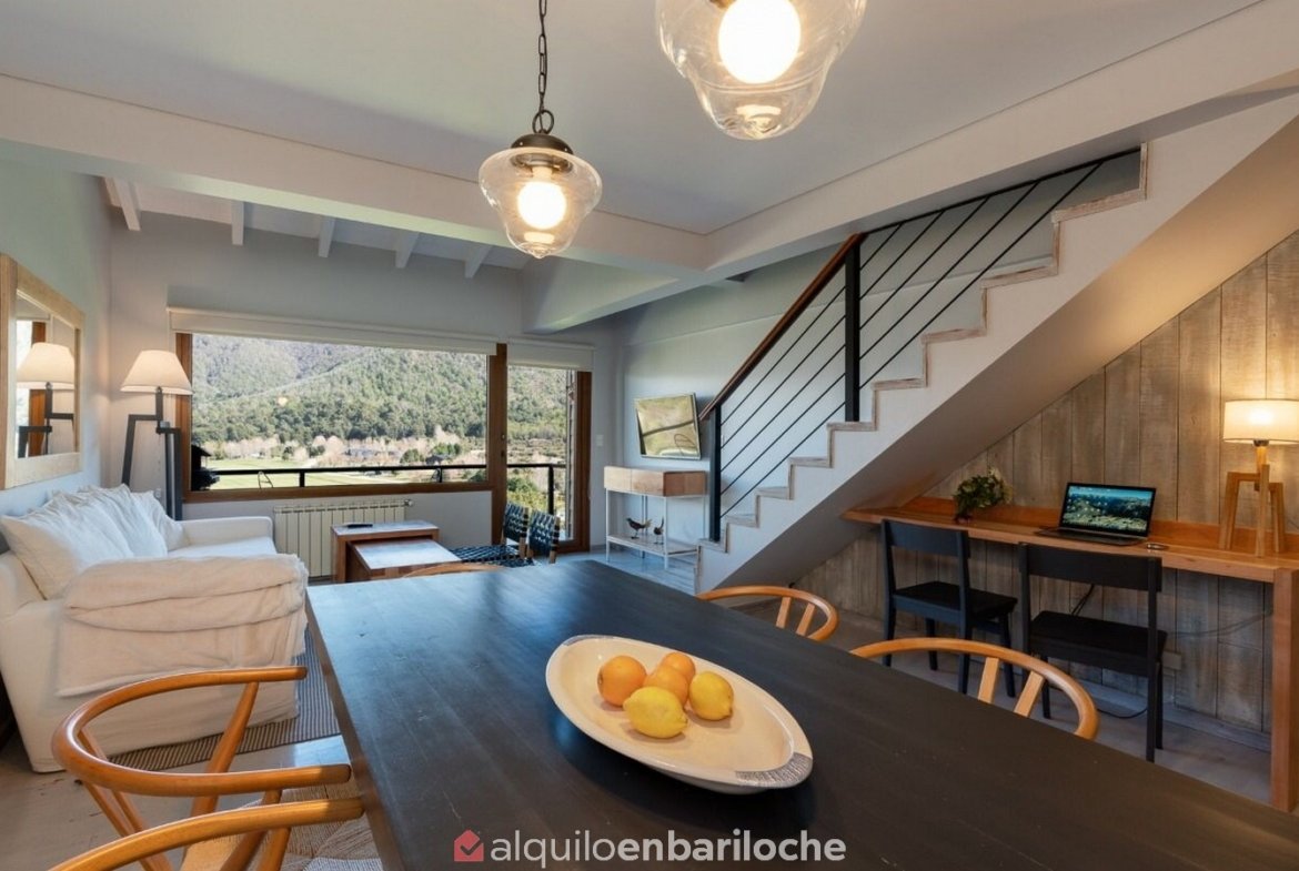 Ubicado en el exclusivo Arelauquen Golf & Country Club, este departamento ofrece un entorno seguro y completo para disfrutar en cualquier estación del año. Se accede por escalera. Ideal para familias o parejas que buscan confort, privacidad y acceso a actividades como golf, polo, ski o deportes de montaña, en un entorno natural privilegiado.