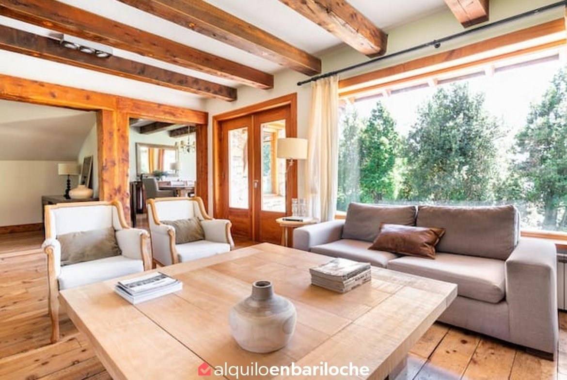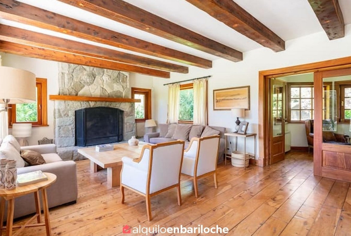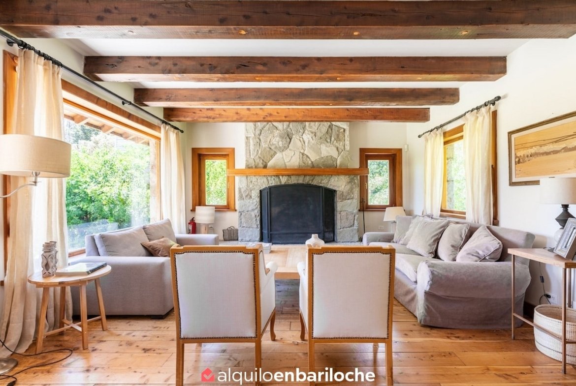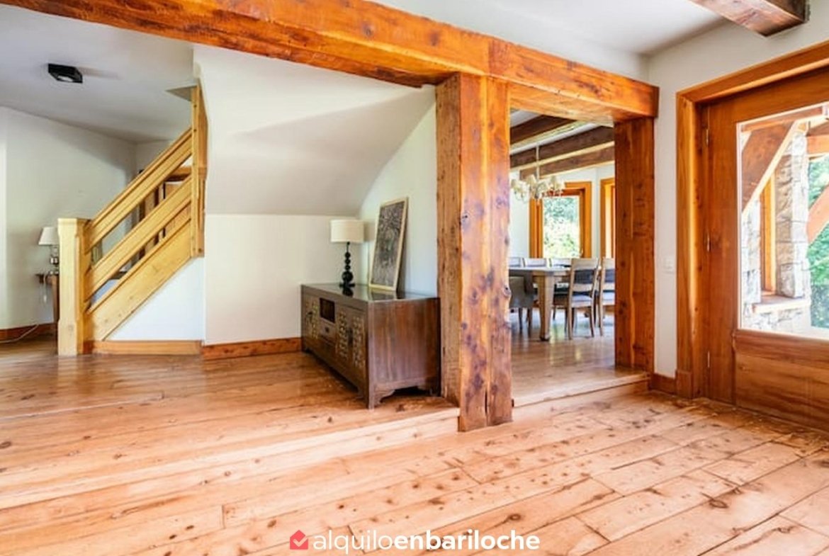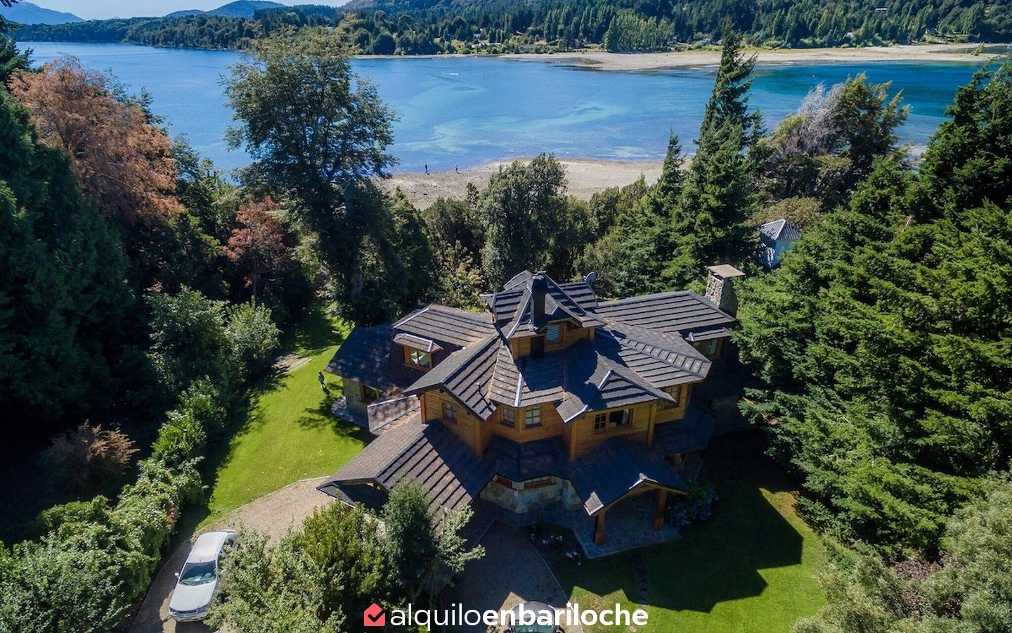 A orillas del lago Nahuel Huapi, esta imponente casa de 400 m² en Bustillo km 17 ofrece privacidad y entorno natural en sus 3 000 m² de parque. Distribuida en tres plantas, combina espacios de esparcimiento (playroom, escritorio con piano), pensada para familias o parejas que valoran confort y contacto directo con el lago.