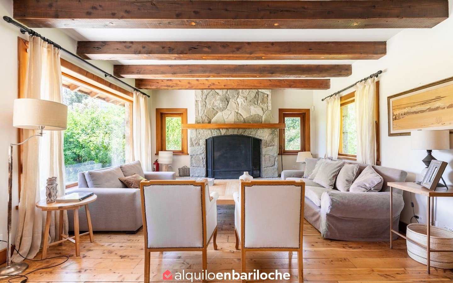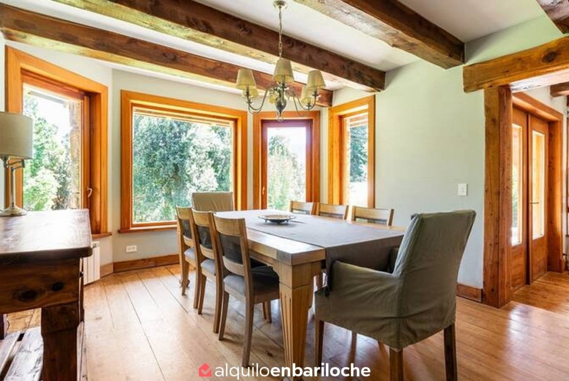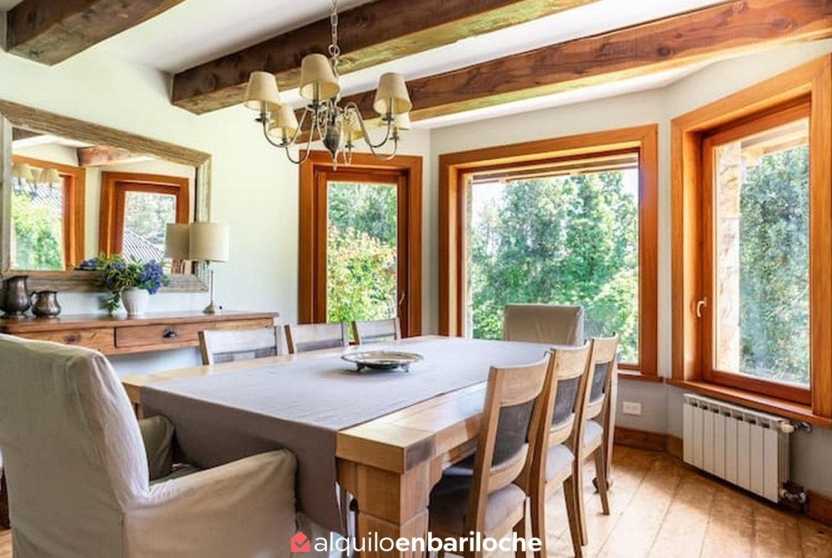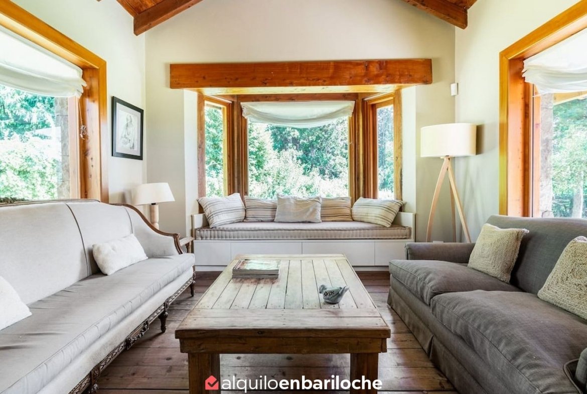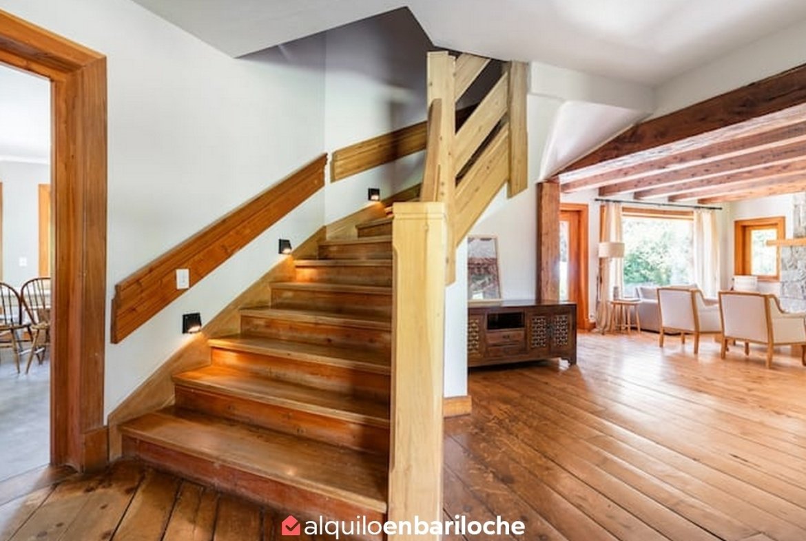 A orillas del lago Nahuel Huapi, esta imponente casa de 400 m² en Bustillo km 17 ofrece privacidad y entorno natural en sus 3 000 m² de parque. Distribuida en tres plantas, combina espacios de esparcimiento (playroom, escritorio con piano), pensada para familias o parejas que valoran confort y contacto directo con el lago.