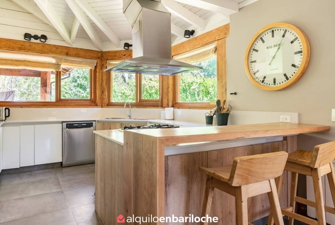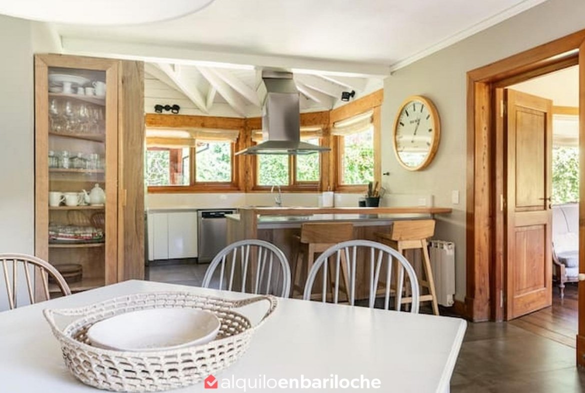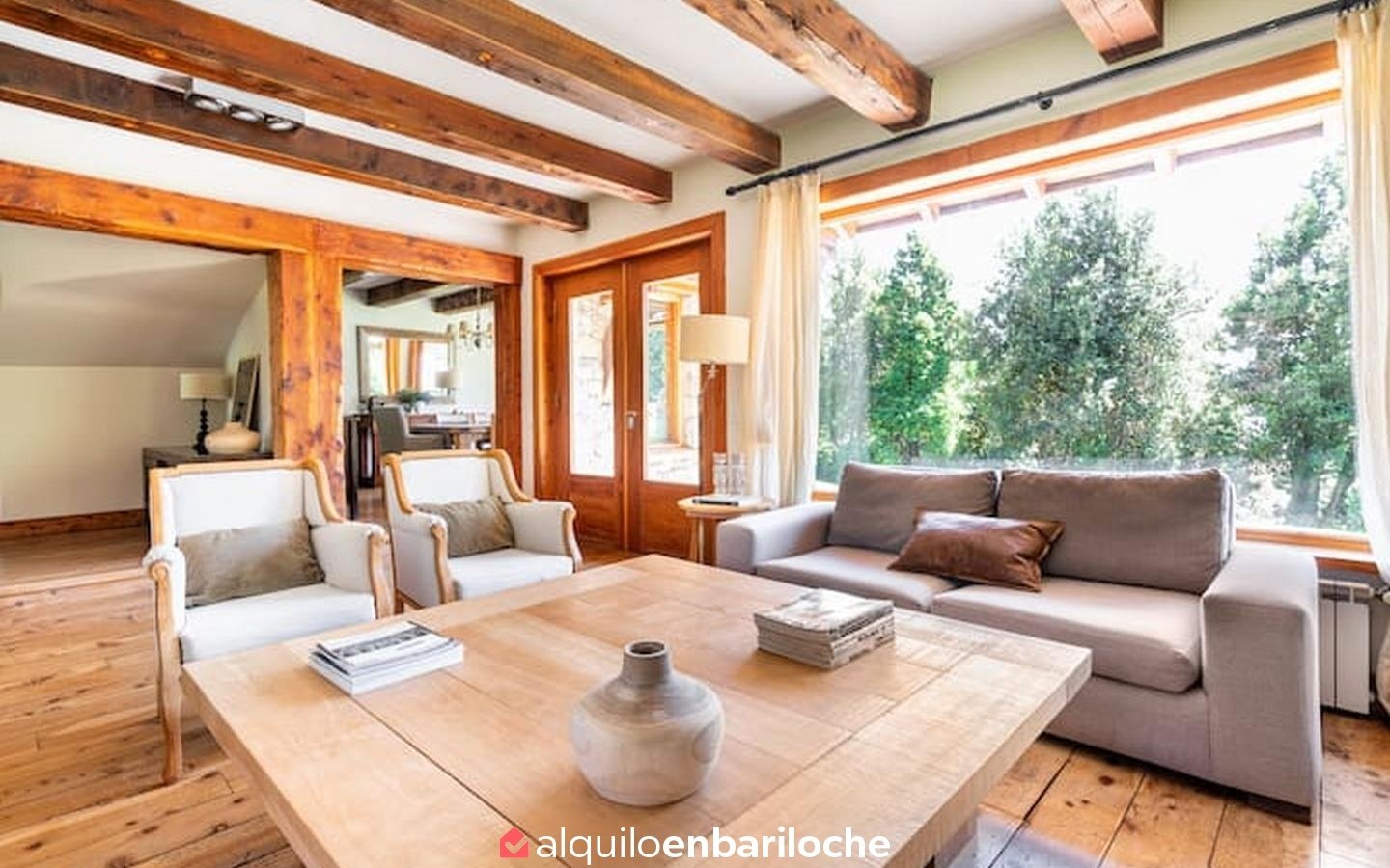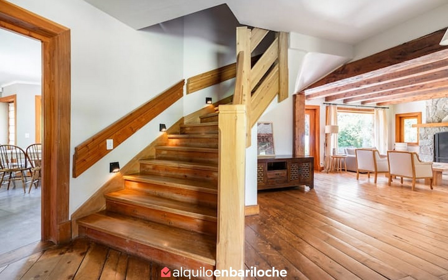 A orillas del lago Nahuel Huapi, esta imponente casa de 400 m² en Bustillo km 17 ofrece privacidad y entorno natural en sus 3 000 m² de parque. Distribuida en tres plantas, combina espacios de esparcimiento (playroom, escritorio con piano), pensada para familias o parejas que valoran confort y contacto directo con el lago.
