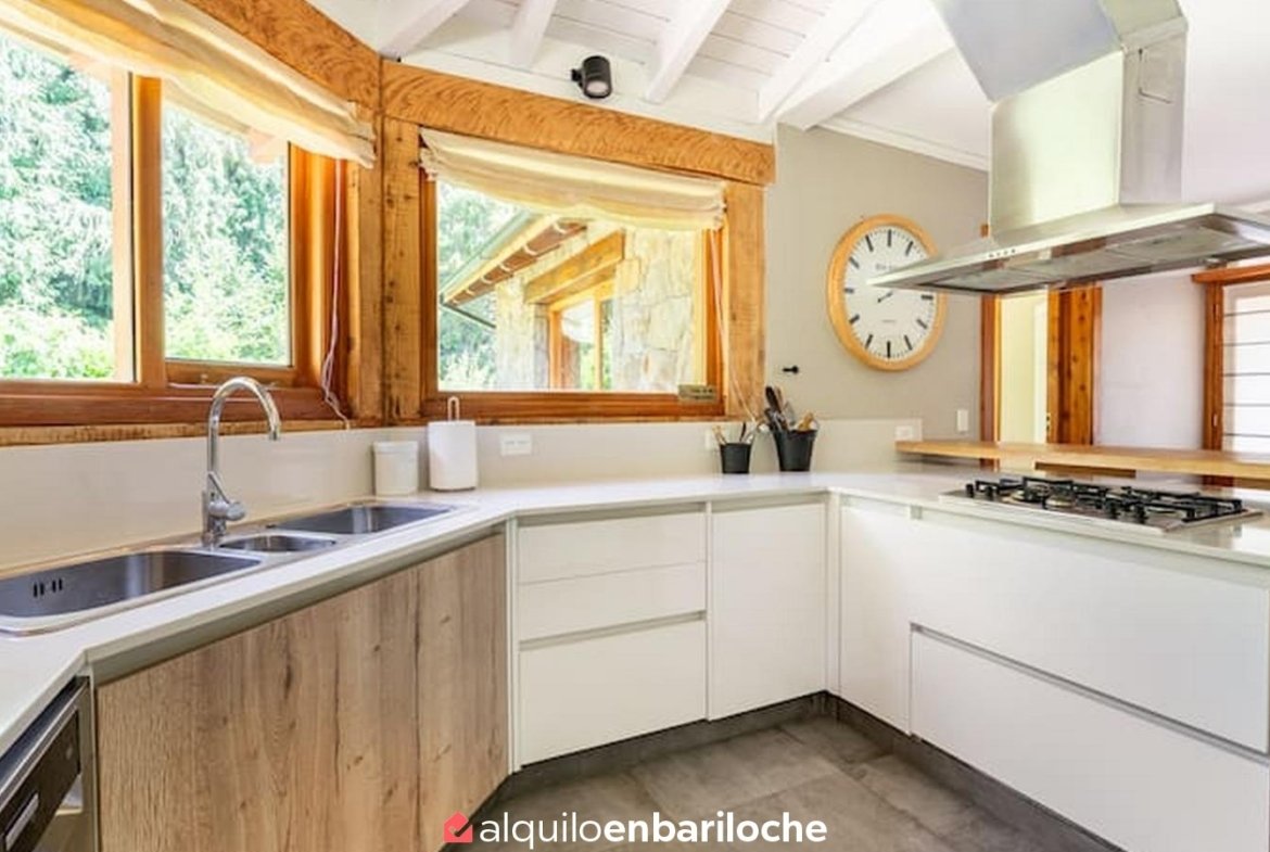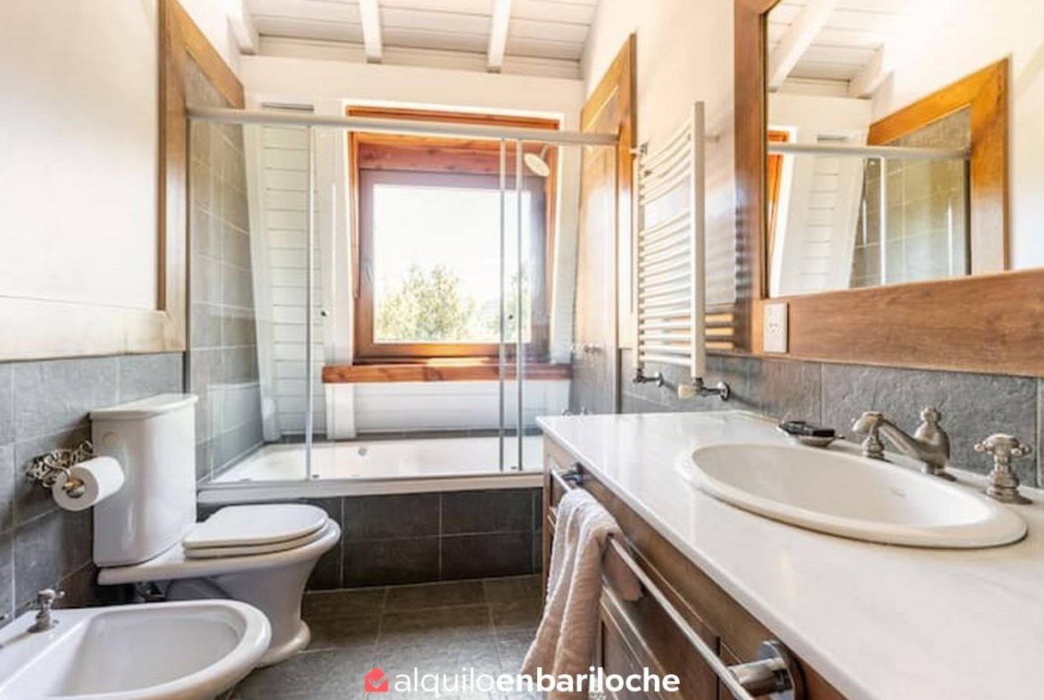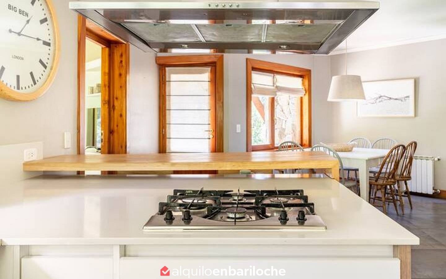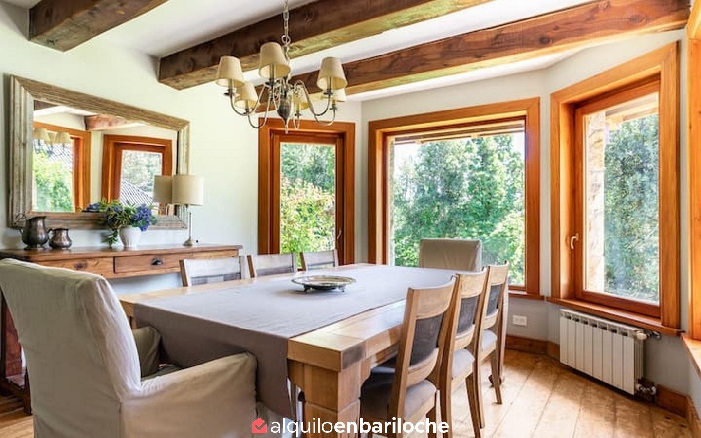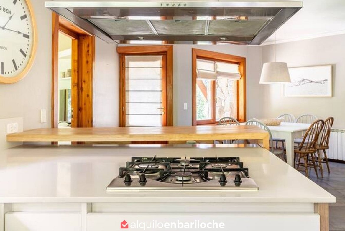 A orillas del lago Nahuel Huapi, esta imponente casa de 400 m² en Bustillo km 17 ofrece privacidad y entorno natural en sus 3 000 m² de parque. Distribuida en tres plantas, combina espacios de esparcimiento (playroom, escritorio con piano), pensada para familias o parejas que valoran confort y contacto directo con el lago.